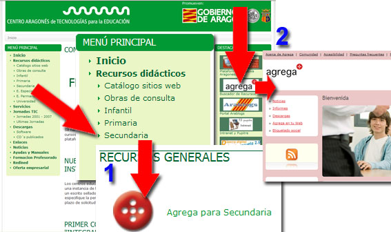 - Podemos acceder al buscador simple de Agrega desde el propio CATEDU, utilizando el recorrido 1.