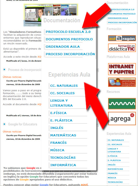 El CATEDU es un portal complejo, por eso seleccionaremos aquellas zonas que nos vendrán bien para Escuela 2.0