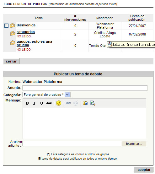 Por su parte, este es el aspecto del foro, al que pueden acceder los usuario con permiso para ello.