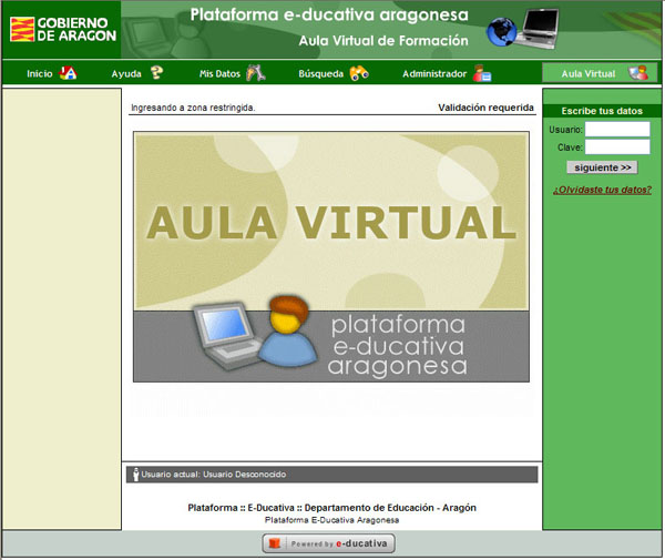 - Un aula virtual de formación a la que sólo tienen acceso los usuarios identificados.